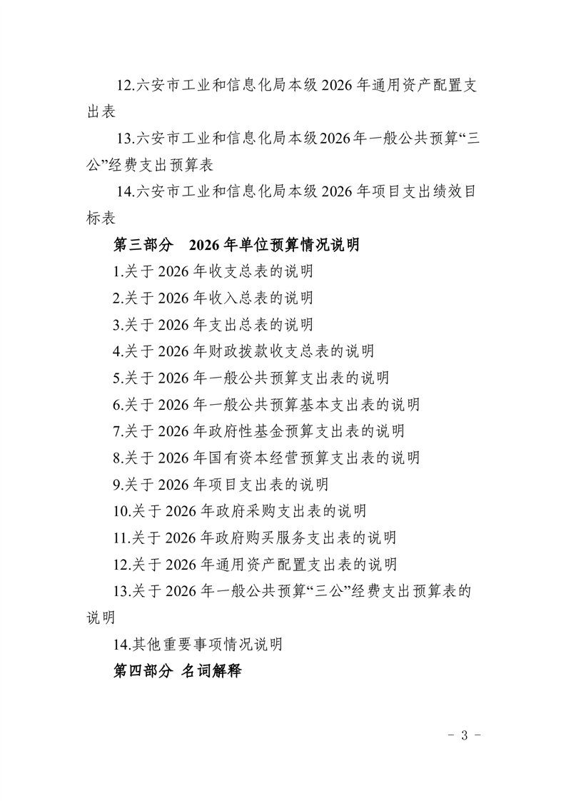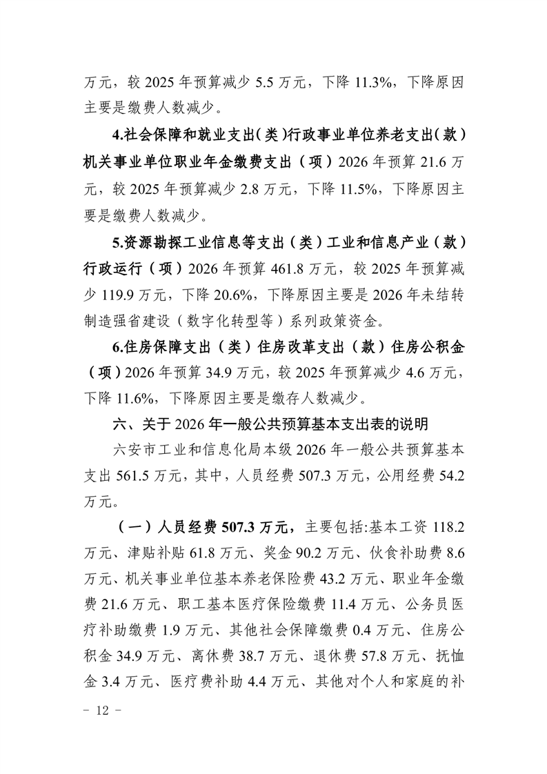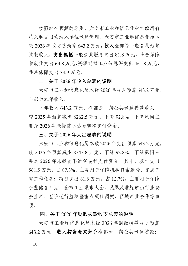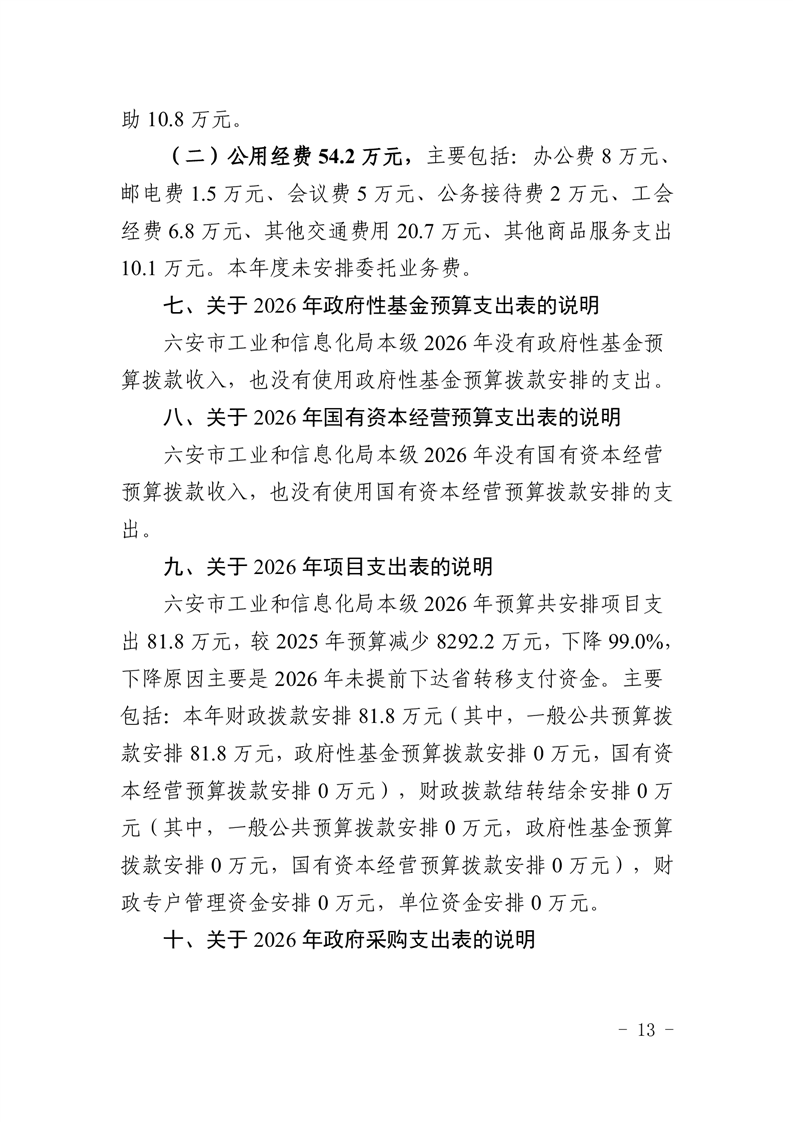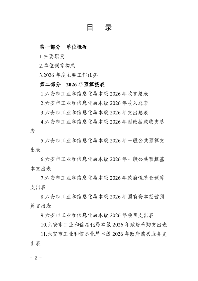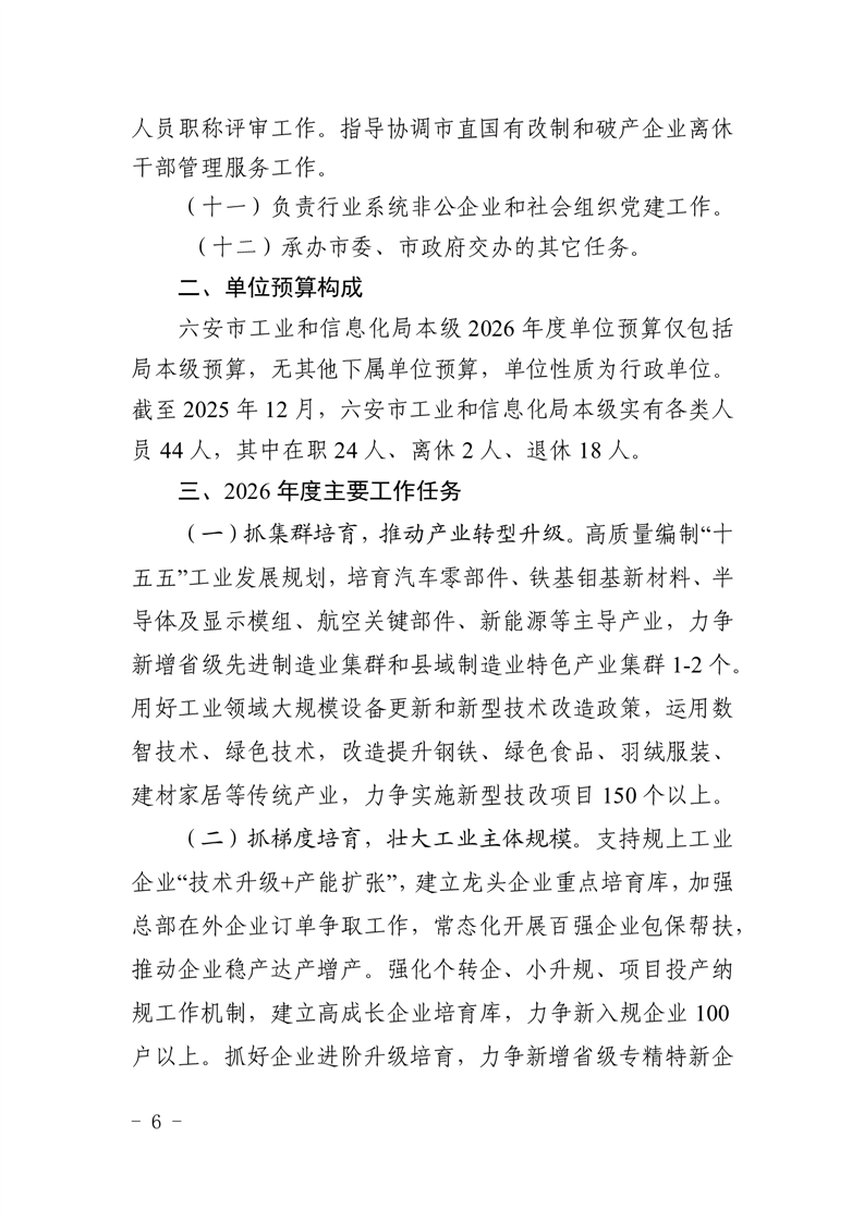 六安市工业和信息化局本级2026年单位预算