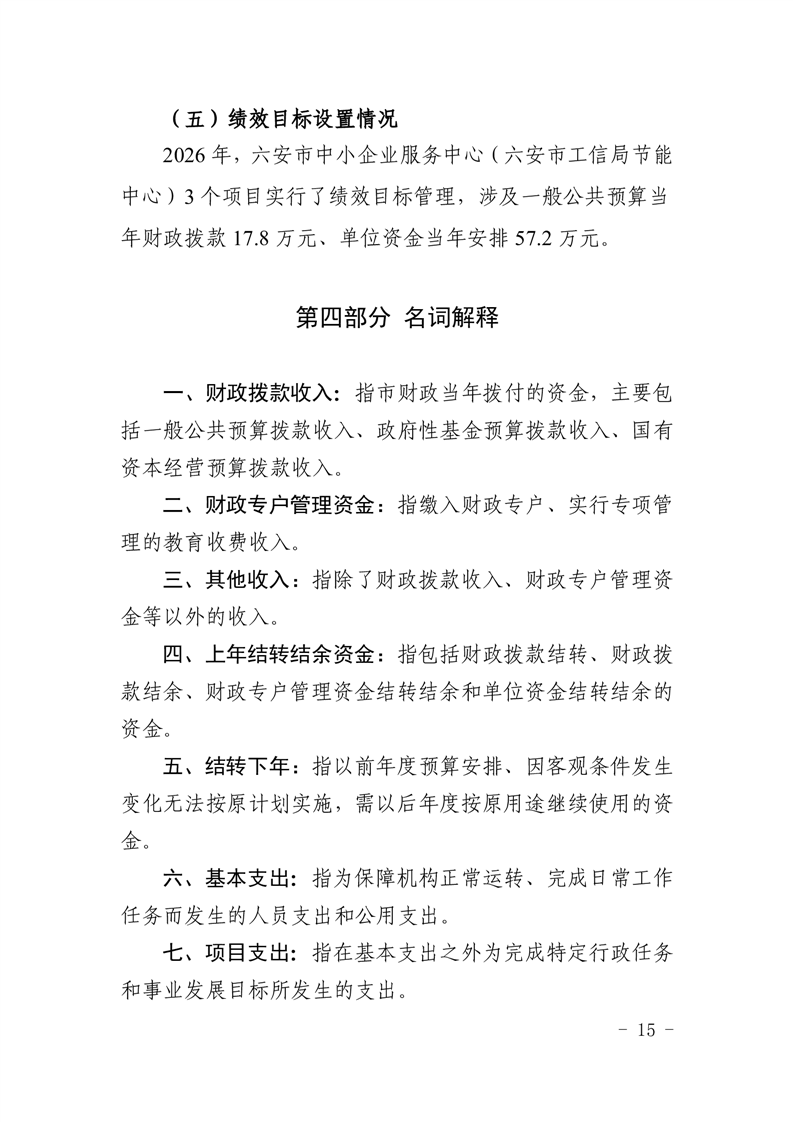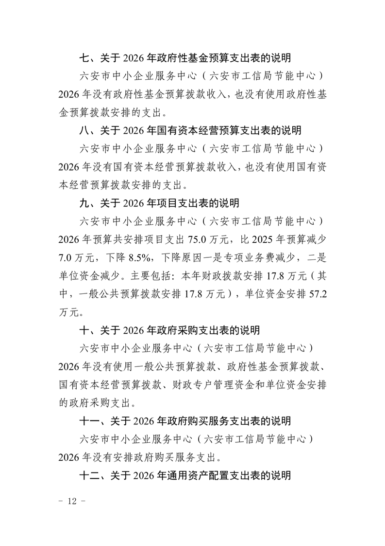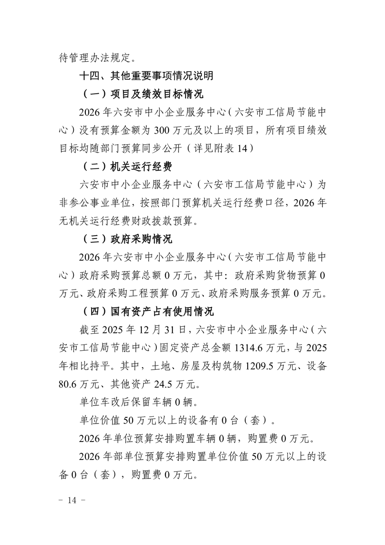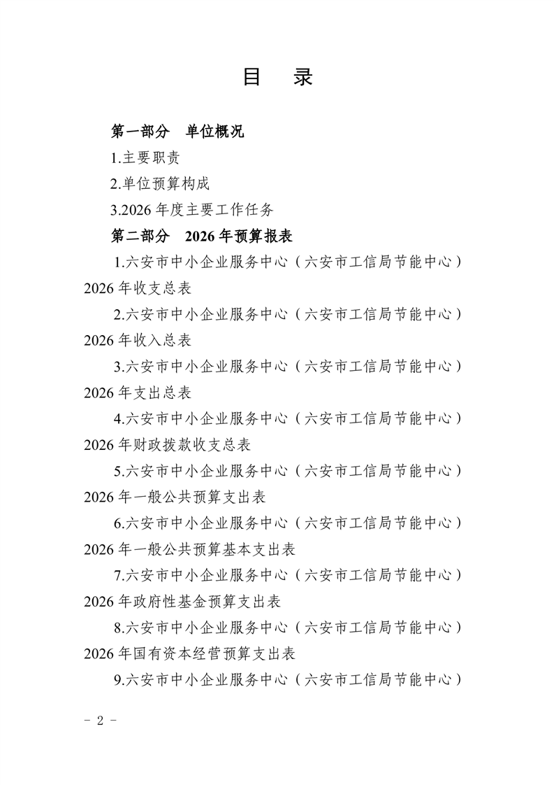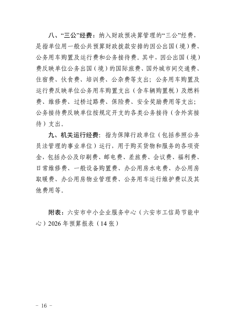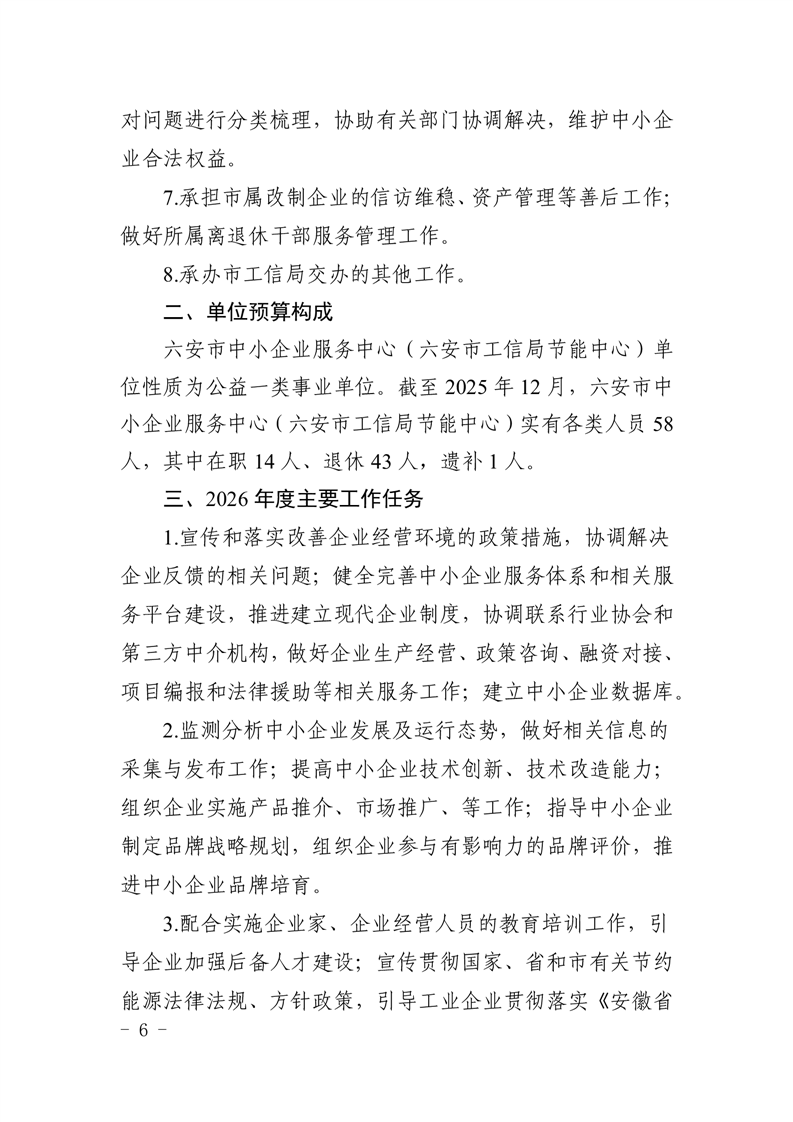 六安市中小企业服务中心(六安市工信局节能中心)2026年单位预算